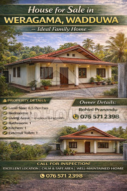 This is a wonderful opportunity to own a comfortable and well-located house in the peaceful residential area of Weragama, Wadduwa. Surrounded by a calm neighborhood and friendly community, this property is ideal for family living, rental investment, or a holiday home.