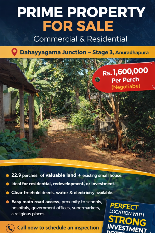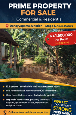 š” Prime Commercial & Residential Property for Saleš Dahayyagama Junction ā Stage 3, Anuradhapuraš° Price: Rs. 1,600,000 per perch (Negotiable after inspection)