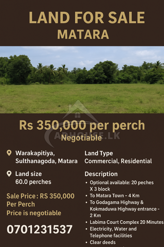 ✨ A rare opportunity to invest in a strategically located land in Matara with excellent road access, development potential, and clear documentation. Ideal for residential living, commercial use, or long-term investment. 🏞️💎