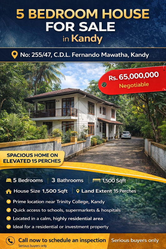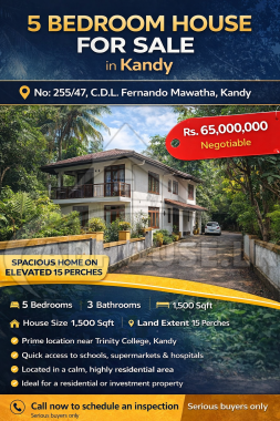This well-positioned property combines comfort, privacy, and convenience, making it an ideal choice for families seeking a peaceful home environment or investors looking for strong long-term value appreciation in Kandy’s premium property market.